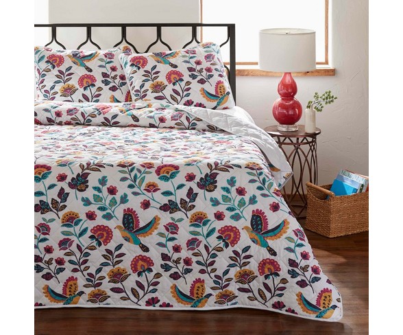 Description Refresh your master suite or guest room with the Mina Bedding Collection from Azalea Skye. Each comforter, duvet and quilt set in this colorful bedding collection features colorful birds and exotic blooms to help transform any bedroom into a comfortable retreat, and the included pillow shams provide the perfect finishing touch. Pair this floral bedding collection with your choice of sheets and curtains to create a distinctive style that speaks to you.