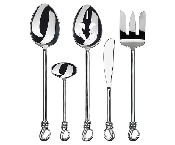 Description The timeless appeal of the Gourmet Settings Twist 5 Piece Hostess Silverware Set will lend an elegant touch to your table setting. This five piece set includes a butter knife, serving fork, slotted spoon, butter spreader and serving spoon. Made of 18/0 stainless steel, this chic set boasts twisted ends and polished finish. Just what you need to elevate the style of your tablescape! Number of Pieces: 5Piece 1 Type: Serving forkPiece 1 Dimensions: 9.75 inches (L)Piece 2 Type: Serving spoonPiece 2 Dimensions: 10.25 inches (L)Piece 3 Type: Spreader knifeHandle Material: 18/10 Stainless SteelMaterial: 18/10 Stainless SteelIncludes Dining: Butter Knife, Serving fork, Slotted Spoon, Butter Spreader, Serving spoonCare & Cleaning: Dishwasher-safeNumber of pieces: 5Made of 18/0 stainless steelDishwasher safe Estimated shipping dimensions: 8.5INCH X 2.0INCH X 11.5INCH DPCI : 200-07-0675 UPC : 624636347010 TCIN : 17406934 Estimated shippimg weight: 1.9POUND