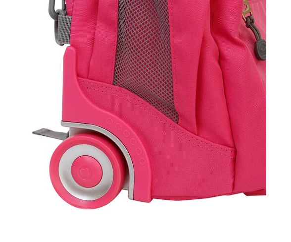 Description Perfect for students on the go, the J World Walkway Dual-Handle Rolling Backpack comes on wheels and has padded backpack straps. It makes organization easy with tons of pockets.Dimensions (Overall): 20.5 inches (H) x 9.0 inches (W) x 14.0 inches (D)Suggested Age: 16 Years and UpShell Material:: PolyesterInterior Features: Accessories Pocket, Internal Organizer, Laptop PocketExterior Features: Handle, Backpack Straps, Front Zip PocketMain Compartment Closure:: Zip ClosureHandle Type: Telescoping HandleGrade Level: Middle school, high schoolFits Laptop: Up to 15 inchesCare & Cleaning: Spot or wipe cleanRecessed two stage locking double handle with push buttonPadded laptop sleeve in main compartmentDesigned to fit under the airplane seat or overhead compartmentSide mesh pockets for water bottle Estimated shipping dimensions: 14.0INCH X 10.0INCH X 23.0INCH DPCI : 069-10-1141 UPC : 837309300056 TCIN : 16953858 Estimated shippimg weight: 7.0POUND