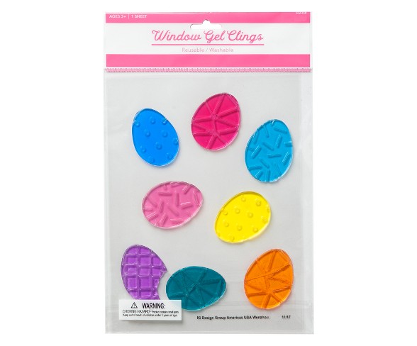 Description This Easter give egg hunting a colorful twist with this 8pc Easter International Greetings Egg Window Gel Clings. This gel clings make hunting a whole lot easier and is just the thing you need to make things a whole lot creative this holiday season. This pack comes inclusive of 8 reusable gel clings.Dimensions (Overall): 8 inches (L) x 6 inches (W)Features: Reusable, Non-toxic, die-cutPackage Quantity: 8Number of Sheets: 1ReusableSet of 81 sheet Estimated shipping dimensions: 6.0INCH X 8.0INCH X 0.01INCH DPCI : 240-04-2828 UPC : 018697237074 TCIN : 53023278 Estimated shippimg weight: 0.1POUND