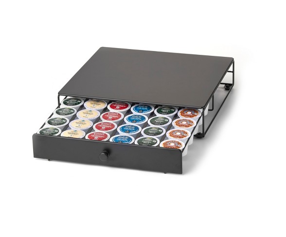 Description Keeping all of your coffee pods neatly stowed in one place is easy as can be with this Nifty 36 Capacity Under-the-Brewer Drawer. This coffee-pod drawer gives you all the space you need to keep your favorite coffee, hot chocolate and tea pods together for easy access. It's perfect to put underneath your coffee maker and is made out of sleek black steel, giving your kitchen a touch of functional style.Number of Pieces: 1Dimensions (Overall): 2.75 inches (H) x 12.75 inches (W) x 12.5 inches (D)Finish: Powder-coatedWeight: 3.75 poundsMaterial: SteelWarranty: Lifetime limited warranty. To obtain a copy of the manufacturer's or supplier's warranty for this item prior to purchasing the item, please call Target Guest Services at 1-800-591-3869Warranty Information:To obtain a copy of the manufacturer's warranty for this item, please call Target Guest Services at 1-800-591-3869.Conveniently holds 36 coffee, hot chocolate and tea podsFits right under your coffeemaker Frees up cabinet space so you don't have to store coffee pod boxes Estimated shipping dimensions: 13.1INCH X 3.1INCH X 13.1INCH DPCI : 072-08-0575 UPC : 729708064106 TCIN : 14131083 Estimated shippimg weight: 3.6156POUND
