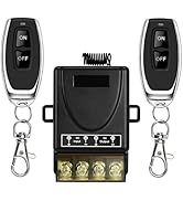 The QOFOWIN Wireless Light Switch and Receiver Kit delivers robust 30A load capacity with a secure RF remote control system boasting a 984ft range. Designed for effortless installation with no wiring required, it supports AC110V/120V/220V appliances including lamps, motors, fans, and outdoor lighting. Featuring dual remotes, IP54 weather resistance, and advanced learning code security, this kit is ideal for professional-grade home automation and industrial control applications.