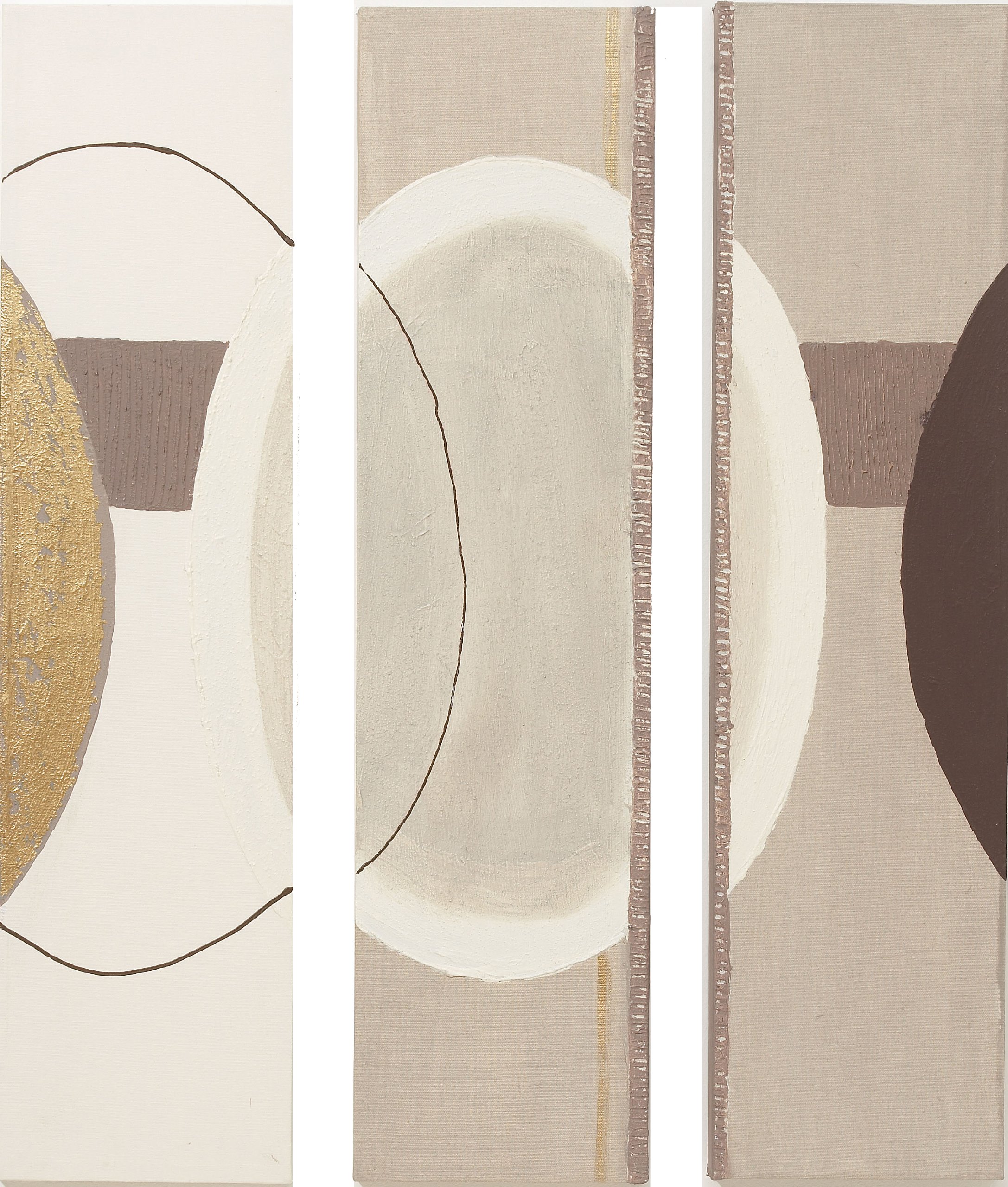 The three canvasses make up a large circle in the centre of the picture