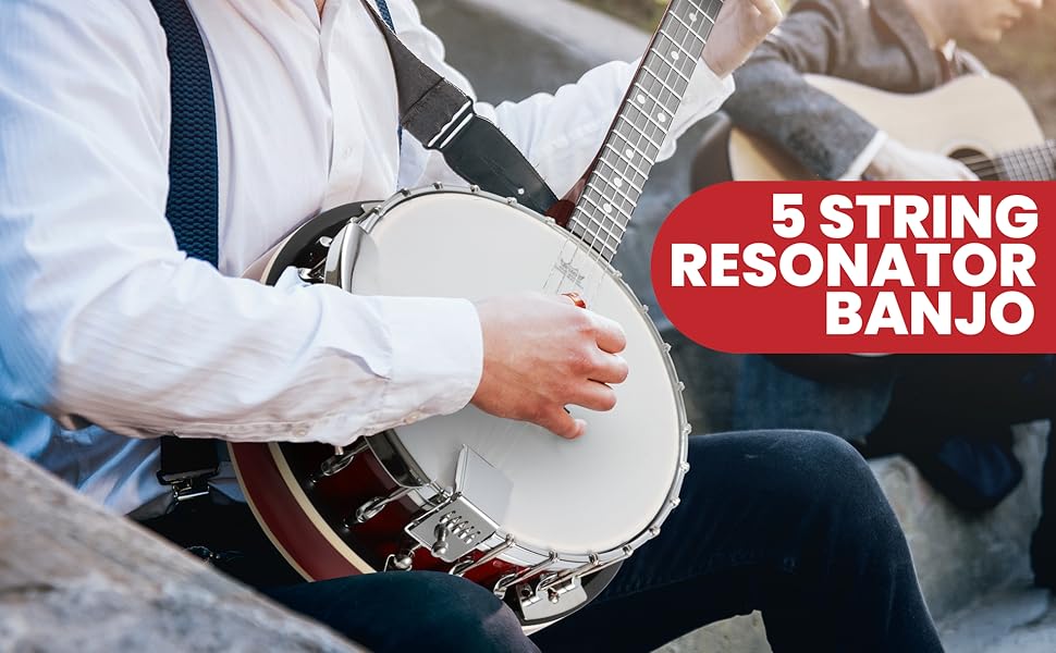 Pyle 5 String Banjo Remo Head, Banjos Beginner Kit, 39" Full Size, Open or Closed Back Instrument w/ 24 Brackets, Starter accessories, Geared 5th Tuner, Gig Bag, Extra Strings - Strap – Picks, Wrench