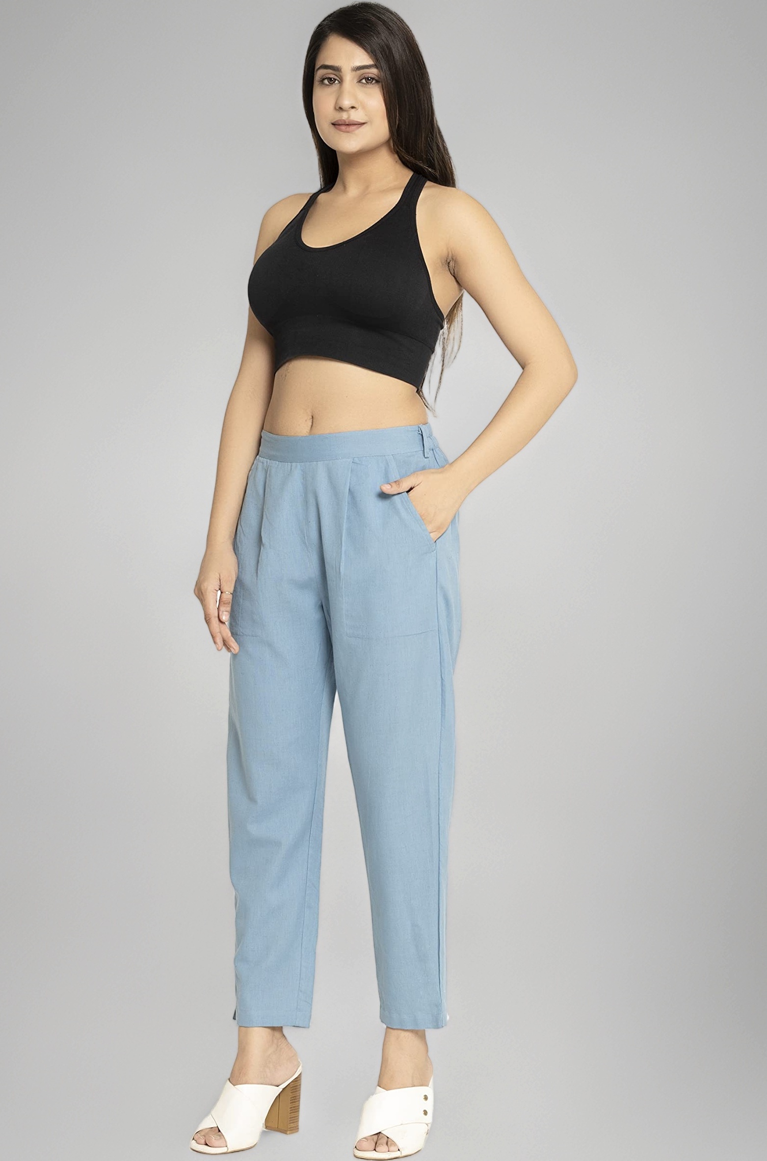 The DIGITAL SHOPEE Women's Regular Fit Casual Pants are designed for the modern woman seeking comfort and style. Made from pure cotton, these machine-washable trousers feature an elastic waistband for a perfect fit. Ideal for casual wear, work, or special occasions, they combine versatility with a chic cigarette pant design.