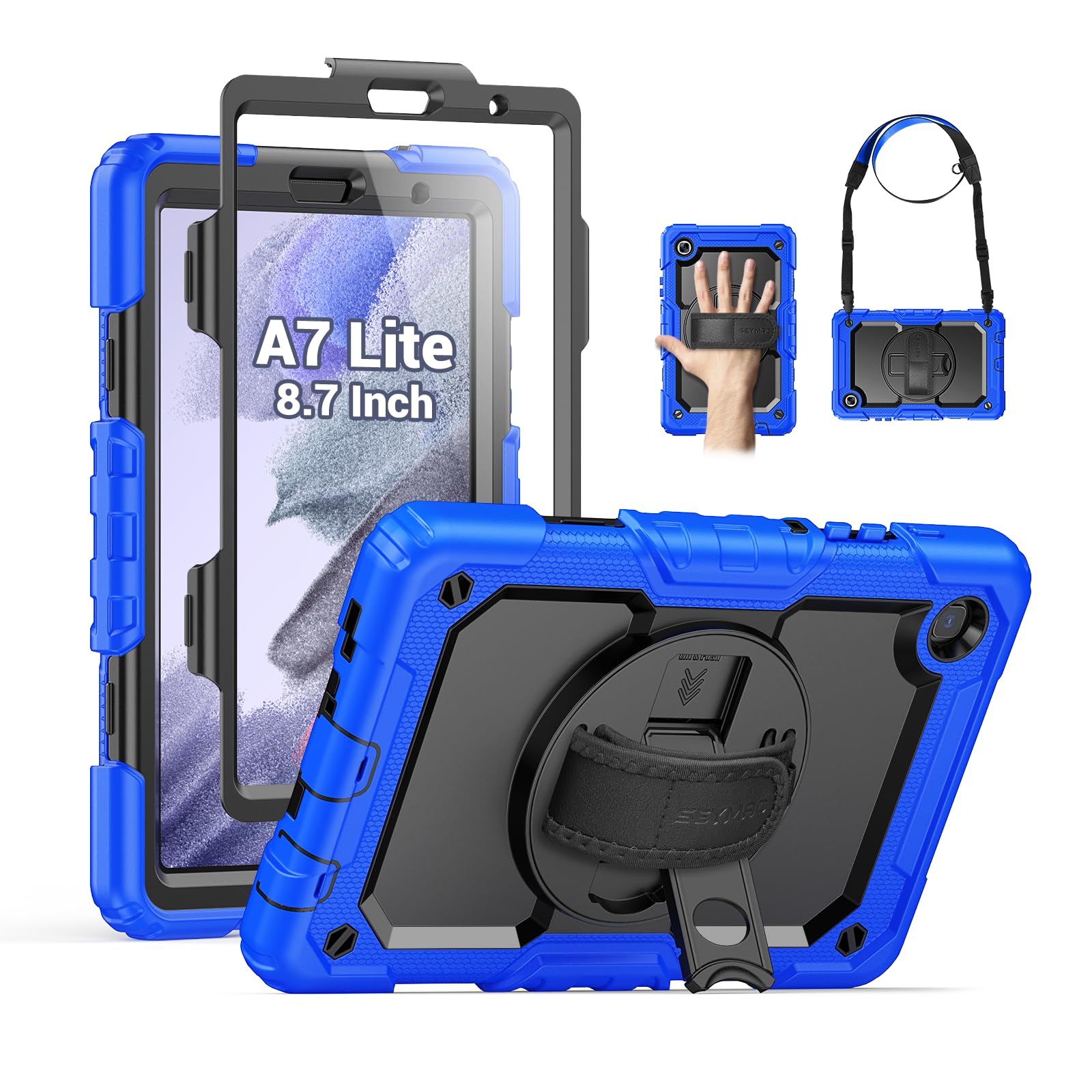 The SEYMAC Case for Samsung Galaxy Tab A7 Lite 8.7" (SM-T220/T225/T227) delivers rugged, full-body protection with a 3-layer shockproof design and built-in screen protector. Featuring a 360° rotating stand with multiple viewing angles, ergonomic hand and shoulder straps for versatile carrying, and a convenient pen holder, this case is engineered for professionals on the move. Its durable polycarbonate and silicone construction is backed by a 6-month warranty, making it the ultimate companion for your Galaxy Tab A7 Lite.
