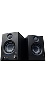 The PreSonus Eris 5BT are 5" powered studio monitors featuring a 5.25" woven-composite woofer and 1" silk-dome tweeter for premium audio clarity. Equipped with Bluetooth 5.0 for wireless streaming, dual 100W Class D amplifiers, and customizable frequency controls, these monitors offer versatile connectivity and energy-efficient durability—ideal for near-field music production, mixing, and recording.