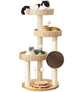 This 48-inch modern cat tree crafted from eco-friendly solid rubberwood offers a stable, multi-level playground designed for large cats up to 20 lbs. Featuring thick sisal scratching posts, hand-woven removable baskets, and interactive toys, it combines durability with comfort. Easy to clean with waterproof surfaces and machine-washable cushions, it fits seamlessly into contemporary homes and assembles quickly without extra tools.