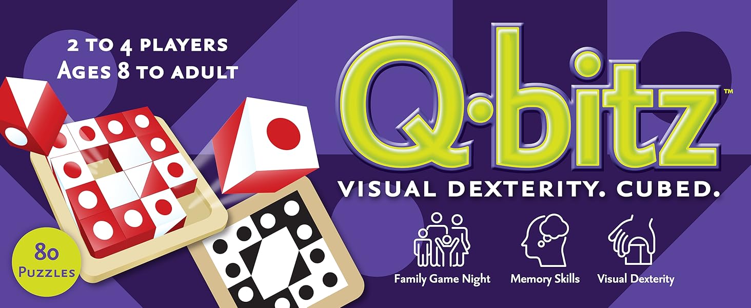 MindWare's Q-bitz is an award-winning pattern matching game designed for 2-4 players aged 8 and up. With 80 unique puzzle cards and multiple gameplay styles, it promotes brain training through visual dexterity and spatial reasoning. Perfect for family game nights, this game combines fun and learning in a modern, tactile experience.