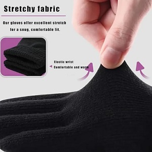 Mens Fleece Touch Screen Gloves Thinsulate Lined Full Finger Thermal Winter Wooly Work (Black)