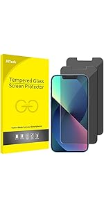 The JETech Privacy Screen Protector for iPhone 13 Pro Max offers a perfect 6.7-inch fit with ultra-thin 0.33mm tempered glass featuring 9H hardness for superior scratch resistance. Its anti-spy technology ensures your screen is visible only from a direct angle, safeguarding your privacy in public or professional settings. Easy to install with a bubble-free design and comes as a convenient 2-pack with cleaning accessories and a 1-year warranty, making it a top-rated choice for privacy-conscious iPhone users.