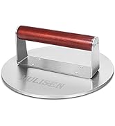 The HULISEN Cheese Melting Dome & Smashed Burger Press set features a 6.2-inch stainless steel burger press and a 9-inch basting dome with a heat-resistant silicone handle. Designed for flat top grills and stovetops, it ensures even cooking, perfect searing, and quick cheese melting. Durable, rustproof, and dishwasher safe, this kit is ideal for both indoor and outdoor grilling enthusiasts seeking professional-quality results.
