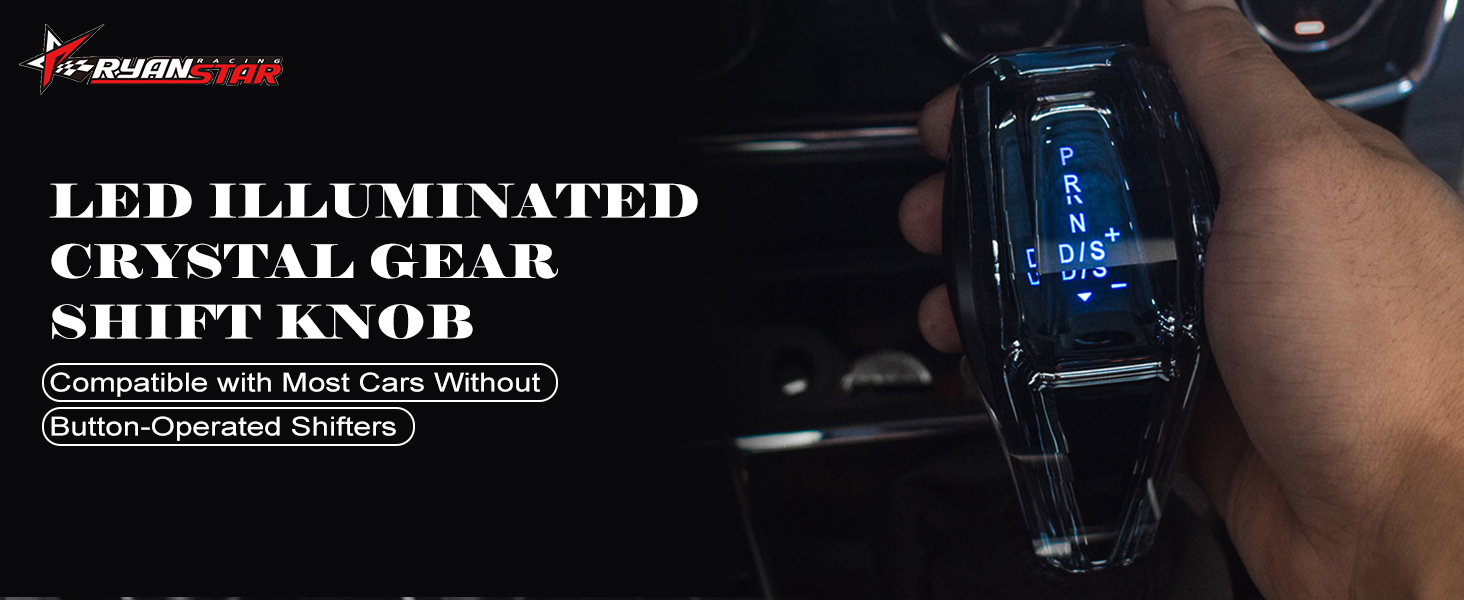 The RYANSTAR RACING Touch-Activated LED Gear Shift Knob combines sleek diamond-cut synthetic crystal aesthetics with practical universal compatibility. Featuring 7-color LED illumination activated by touch, it fits most automatic and manual transmissions without button shifters. Easy to install with three adapter sizes, this gear knob elevates your vehicleโs interior with a modern, luxurious touch.