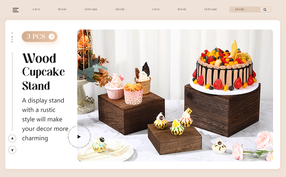 Barydat 3 Pcs Wooden Risers Stands Cake Rustic Stackable Square | Desertcart Mexico