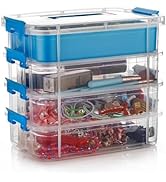 The UCRAVO Plastic Clear 3-Tier Stackable Storage Container features 30 adjustable compartments within a compact 10x5x15 cm footprint. Made from durable, lightweight plastic with snap-on lids and a convenient handle, it offers customizable, transparent storage ideal for jewelry, craft supplies, toys, and more. Perfect for professionals and hobbyists seeking sleek, space-saving organization.