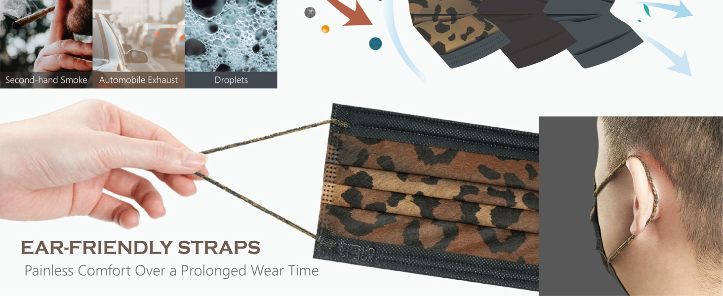 CSD Colo 30 Pcs Leopard Print Disposable Face Masks, 3 Ply Adult Mask with Elastic Ear Loop, Nose Bridge Clip, Breathable Comfortable Mask Great for Indoor, Outdoors Use (Camo)