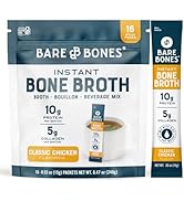 Bare Bones Bone Broth Instant Powdered Beverage Mix, Chicken, Pack of 16, 15g Sticks, 10g Protein, Keto & Paleo Friendly